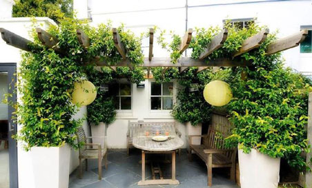 1)衣食住行是人們生活較基本的需要,其中有一句俗話是這樣說(shuō)的“民以食為天”,從這就不難看出人們對(duì)食的看重,若是別墅庭院的面積夠大,可以設(shè)置一個(gè)室外餐廳,用木質(zhì)格柵做頂,在四周稍稍栽種一些葡萄,當(dāng)葡萄的藤蔓爬滿格柵時(shí),在此處休息,聊天喝茶,也是別有一番風(fēng)味。
